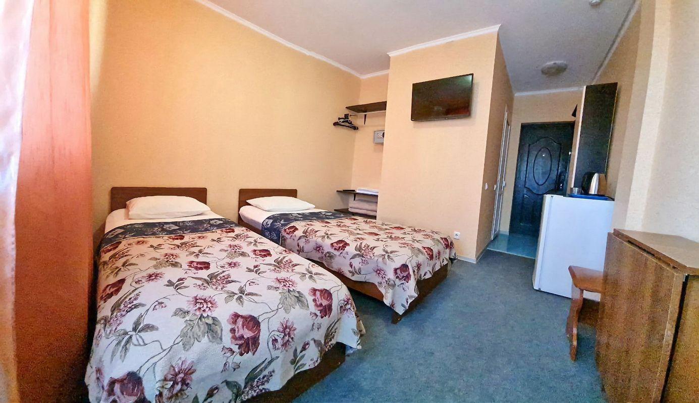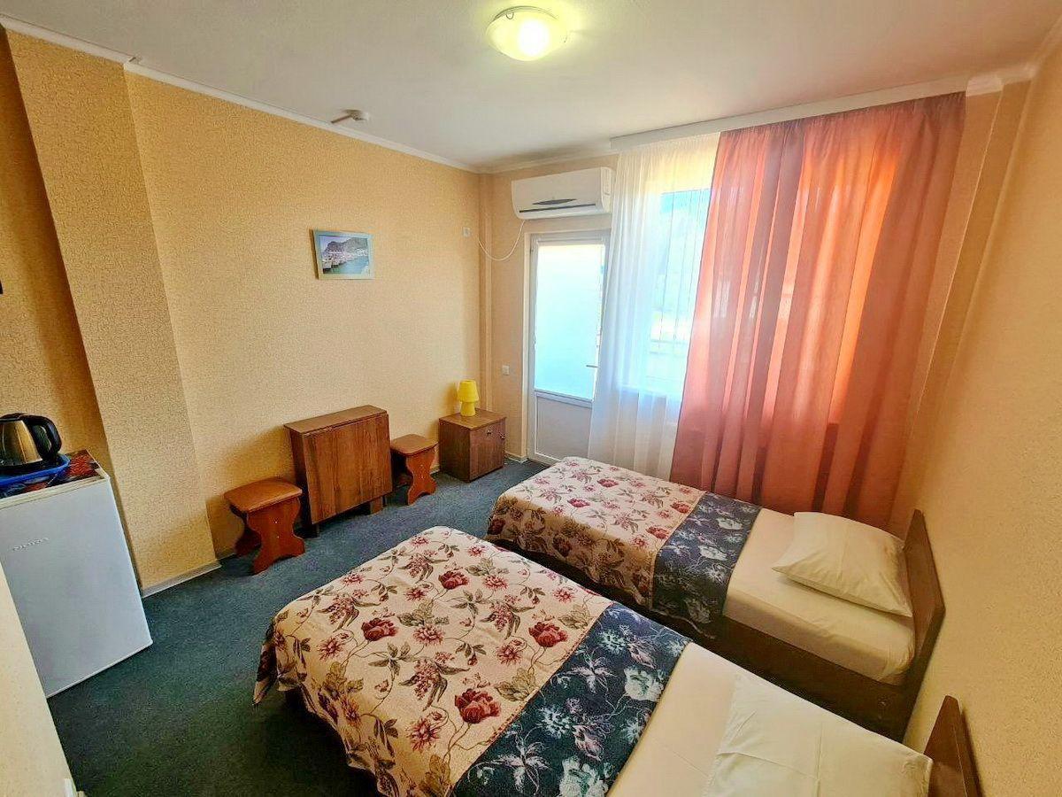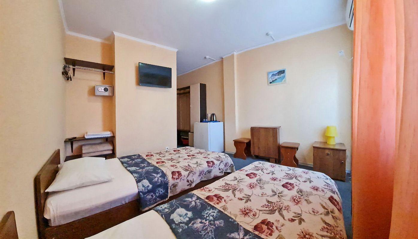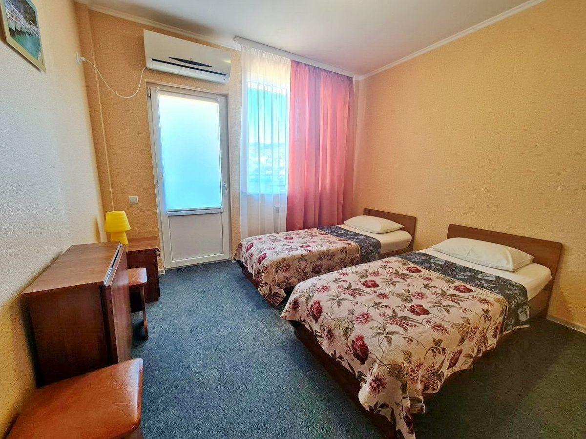 2 места 15 м2, 1 комната Душ и туалет в номере Холодильник Телевизор Балкон Кондиционер Номера находятся на втором этаже, третьем этаже, в сторону бассейна. В стандартных номерах имеются: прихожая, холодильник, сейф, сплит-система, телевизор (поддерживает устройство USB). Wi-Fi, сан/узел в номере, душ, балкончик, сейф. На кроватях топер (5 см). Предоставляются: полотенца (ручные и ножные). Постельное белье. Фен и чайник по просьбе. Балкон. На балконе стол, стулья, сушка для белья. Время заезда: 14:00 Время выезда: 12:00