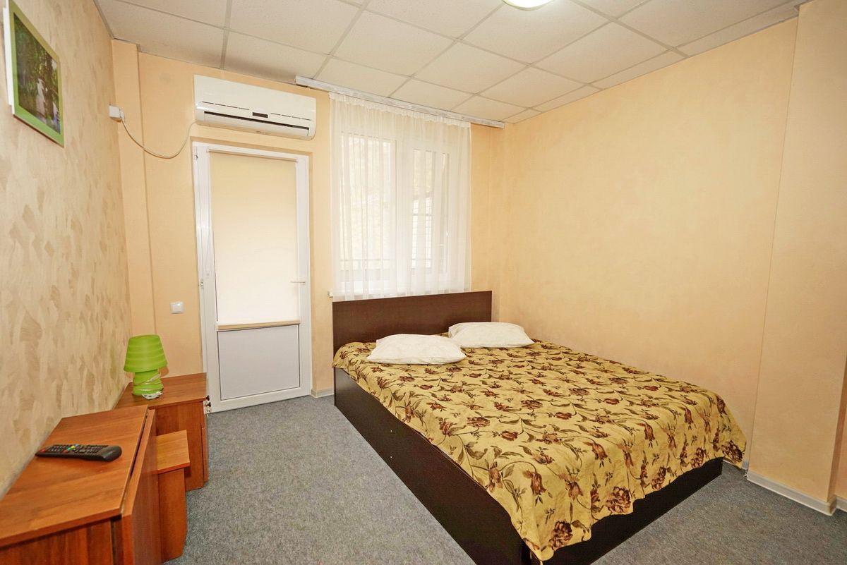 2 места + 1 доп. 15 м2, 1 комната Душ и туалет в номере Холодильник Телевизор Балкон Кондиционер Номера находятся на третьем этаже. В стандартных номерах имеются: холодильник, сейф, сплит-система, телевизор (поддерживаетустройство USB). WI-FI, сан/узел в номере, душ, балкончик, сейф. На кроватях топер (5 см). Предоставляются: полотенца (ручные и ножные). Постельное белье. Фен и чайник по просьбе. Балкон. На балконе стол, стулья, сушка для белья. Время заезда: 14:00 Время выезда: 12:00