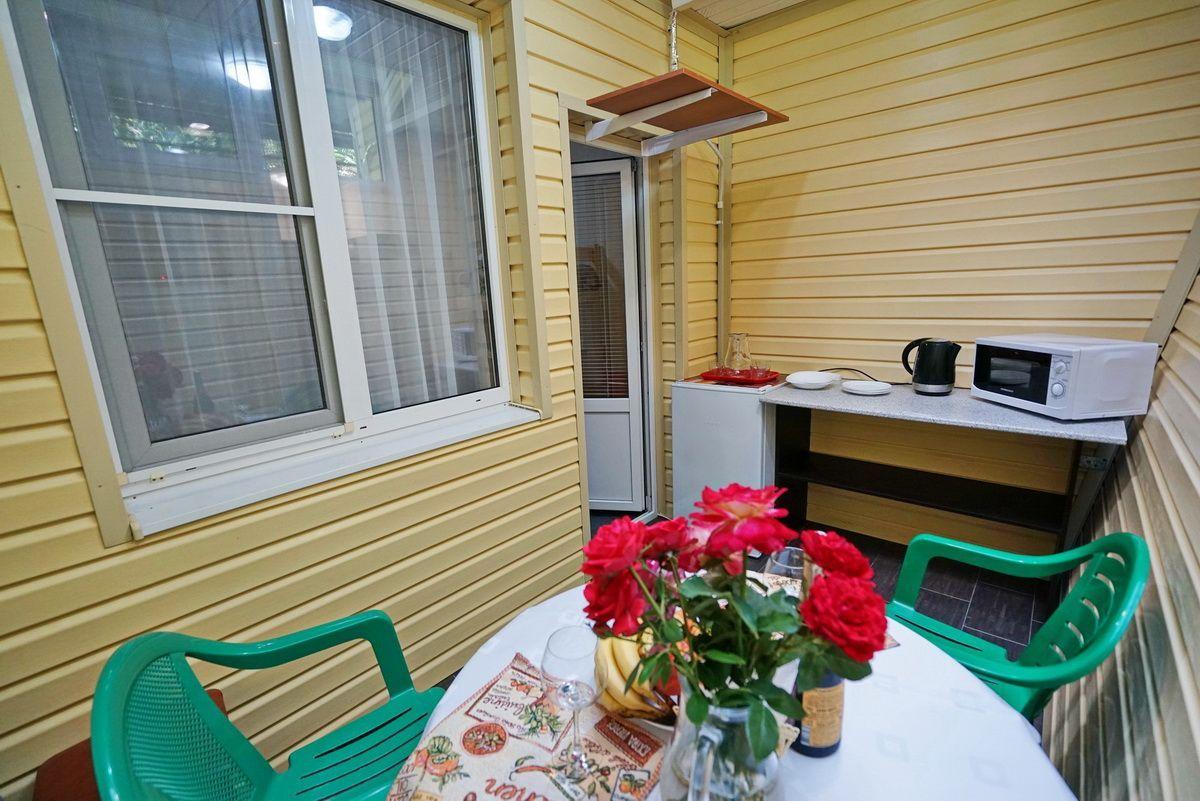 4 места 15 м2, 1 комната Душ и туалет в номере Кухня Холодильник Телевизор Балкон Кондиционер В стандартных номерах имеются: сейф, кондиционер, телевизор (поддерживаетустройство USB), Wi-Fi, душ, туалет. На кроватях топер (5 см). Предоставляются: полотенца (ручные и ножные), постельное белье. На мини кухне имеются: холодильник, микроволновая печь, электрочайник. Стол и стулья. Номер находится на втором этаже в сторону леса. Время заезда: 14:00 Время выезда: 12:00
